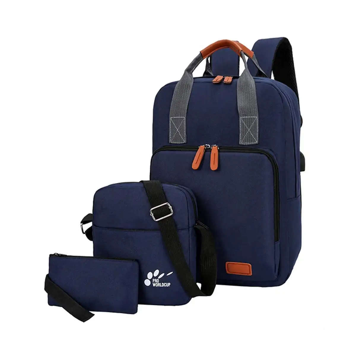 3pcs/set USB Charging Backpack Oxford School Backpack for Teenager Fashion Student Shoulder Bag Lap