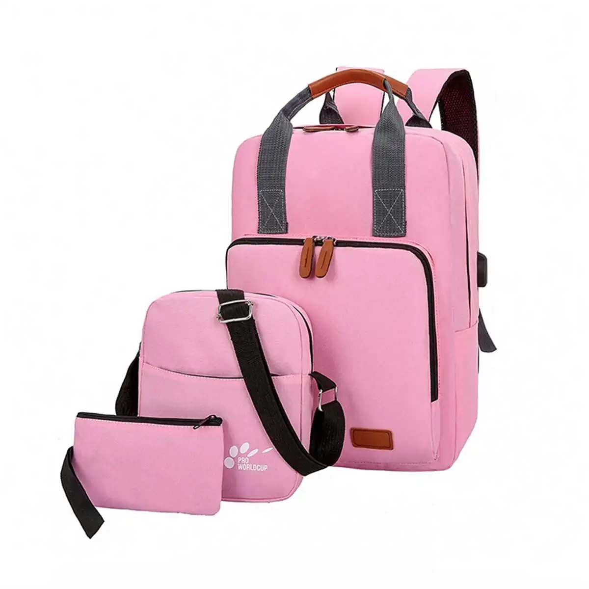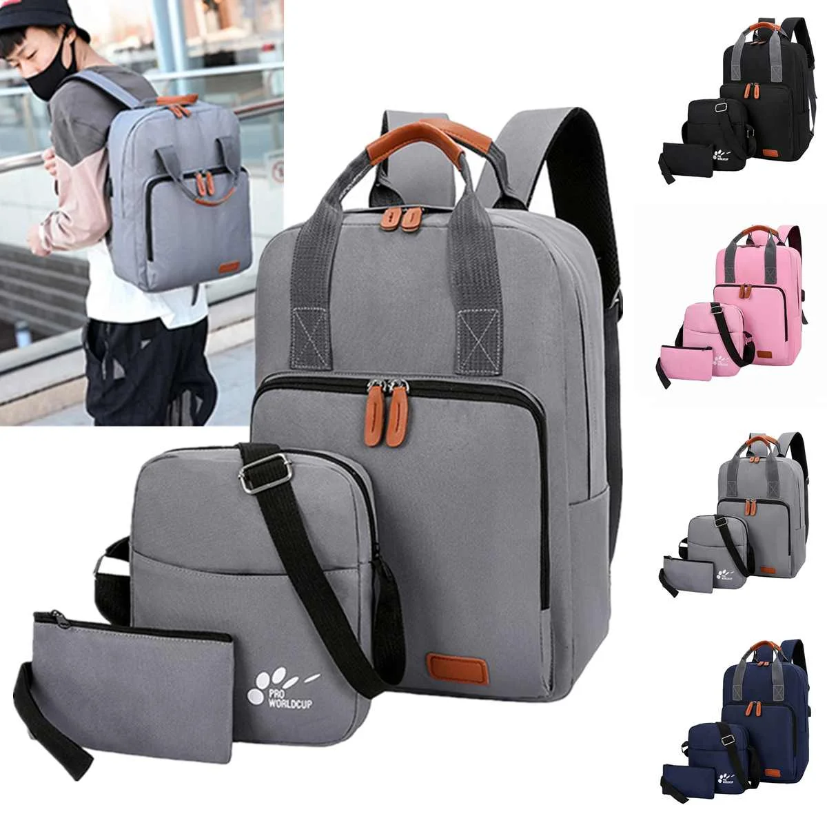 [4000022539096] Specification: Colors:Black,Grey,Pink,Blue Material:Oxford cloth Lining Material:Polyester Backpack:29x15x40cm/11.41"x5.90"x15.74" Shoulder Bag:20x5x21cm/7.87"x1.96"x8.26" Wallet:18x0.5x10cm/7.08"x0.19"x3.93" [Conversion: 1cm=0.3937 inch, 1inch=2.54 cm] Features: -Open Method: Zipper open. -Multi-purposes designed, you can use it as Handbag,Crossbody Bag,Backpack. -Large capacity helps you organize all your essentials easily. -Can store A4 Magazine,books, umbrella and pocket money, phone, etc. -Perfect for traveling, weekend getaways, school, shopping and other outdoor activities in daily life. Package Included: 1 x Backpack 1 x Shoulder Bag 1 x Wallet Note: -Due to different producing batches, product details might be a little different. If you minding the difference, please buy it carefully. -Please allow 1-3CM differs due to manual measurement. -Due to the different display and different light, the picture may not reflect the actual color of the item. Thanks for your understanding. / About service / On- Time Delivery Full refund if product isn't received in guaranteed delivery time Longer Protection 15 day more protection after order completion Returns Extra Return any product,only those in perfect condition Guaranteed Quality Guaranteed Quality or Full refund If you have any problems with our items or services, please feel free to contact us first before you leave negative feedback. We will do our best to solve any problem and provide you with the best customer services.