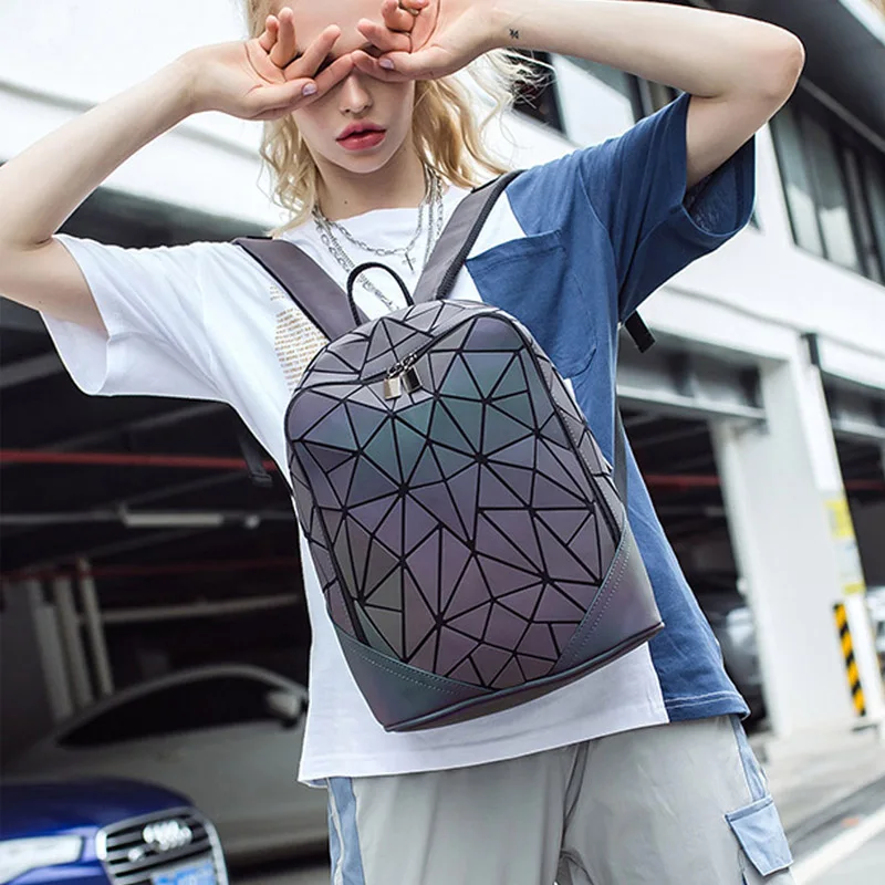 Fashion Women Backpack Mochila Geometric Luminous Backpacks Bagpack Girls Noctilucent Travel Should