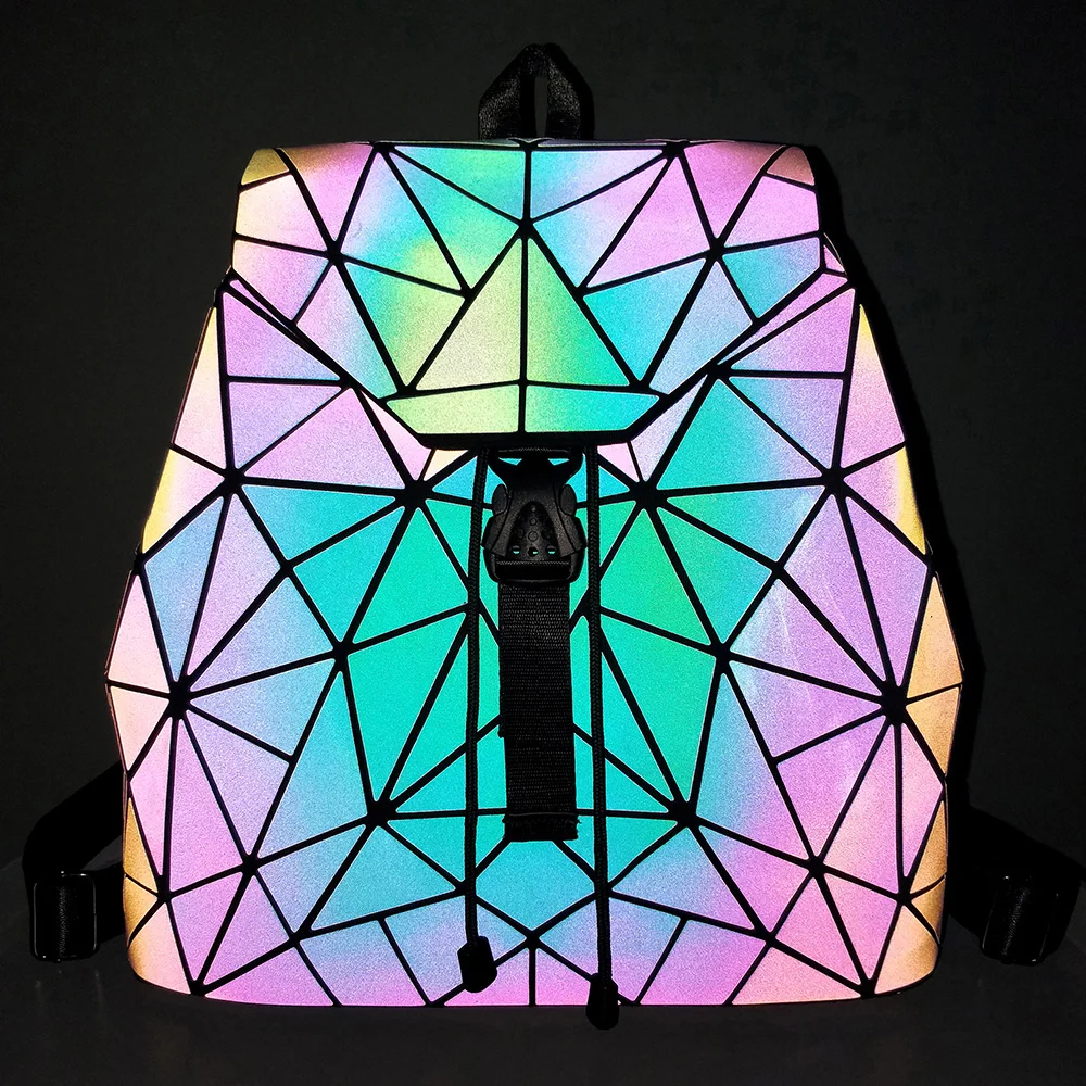 Women Backpack Luminous Geometric Plaid Sequin Female Backpacks For Teenage Girls Bagpack Drawstrin
