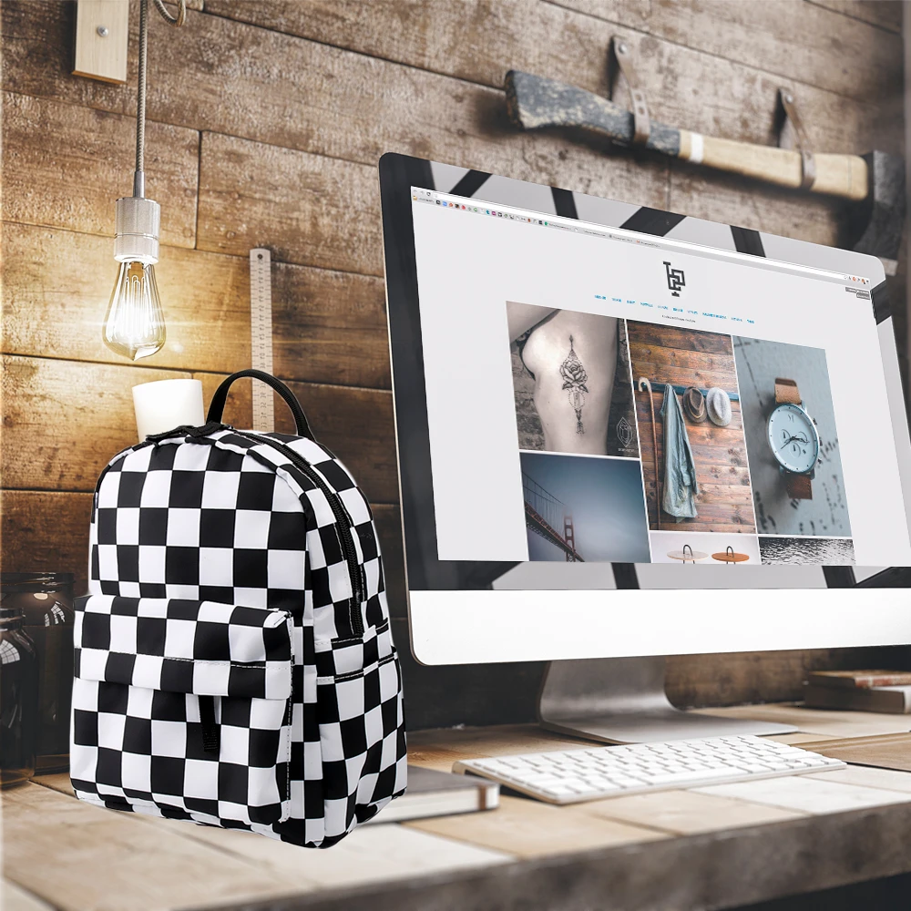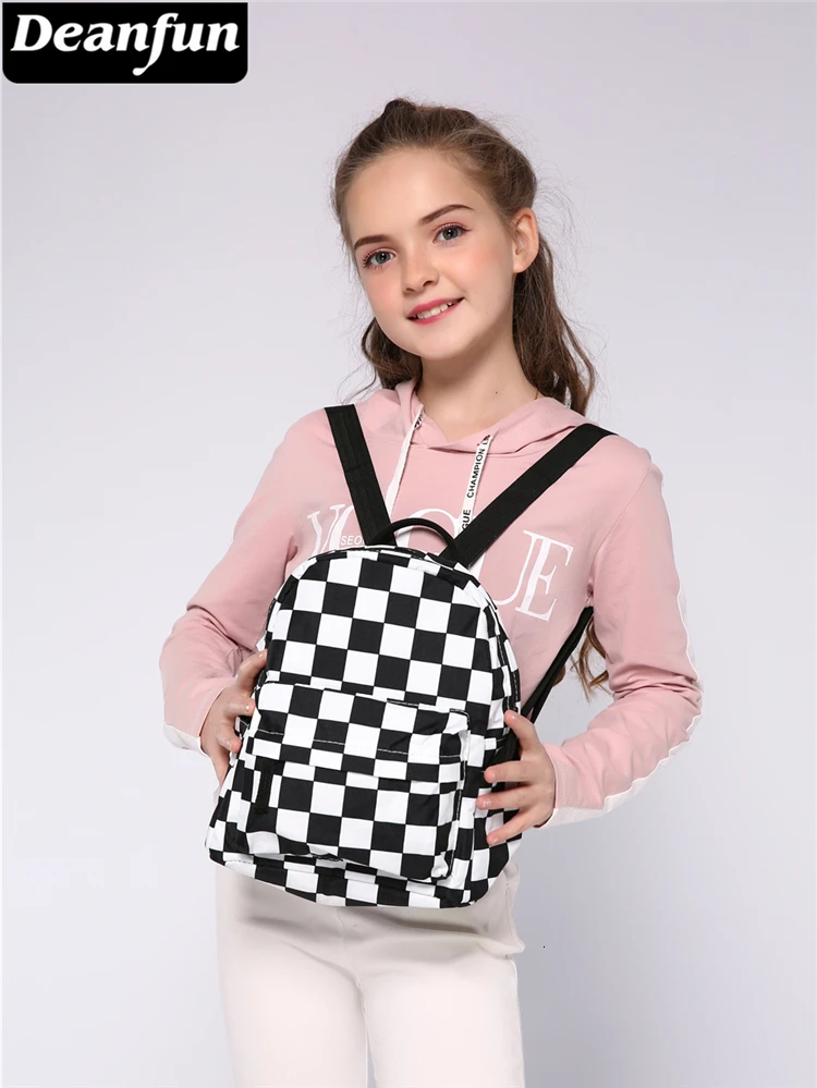 Deanfun Mini Backpack 3D Printed Classical Black And White Lattice Waterproof Backpack Women Should