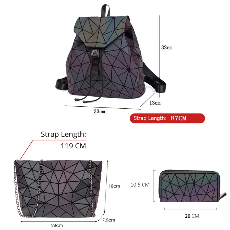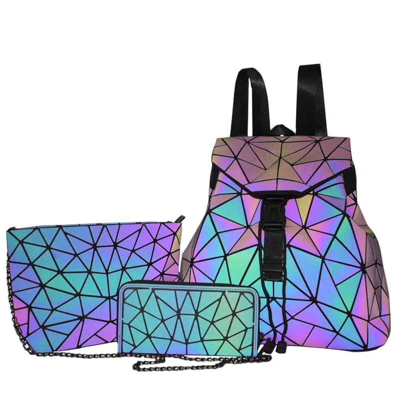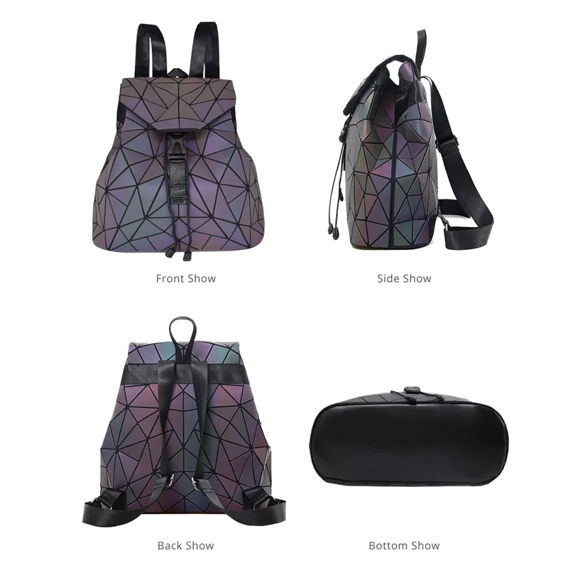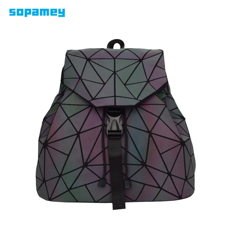 Bao Women Backpack Luminous Drawstring Female Daily Backpack Geometry Backpacks Folding School Bags