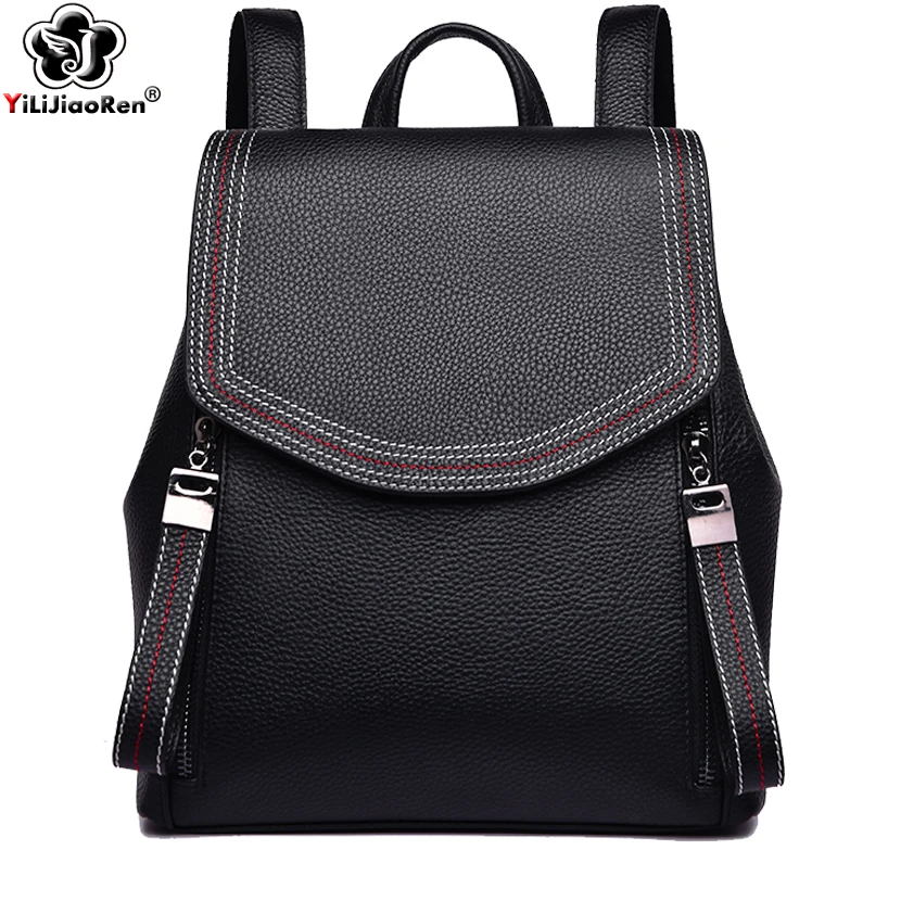 Fashion Thread Women Backpack Designer Genuine Leather Backpack Female Large Capacity Bookbag Simpl