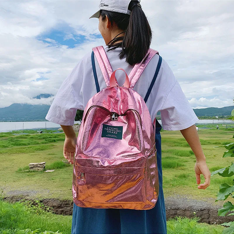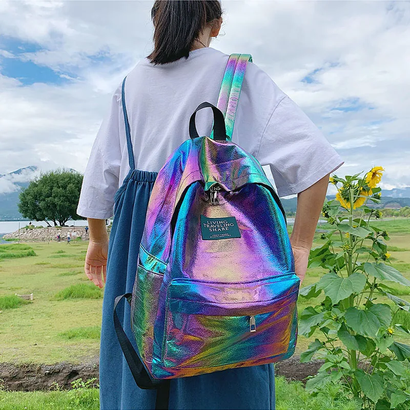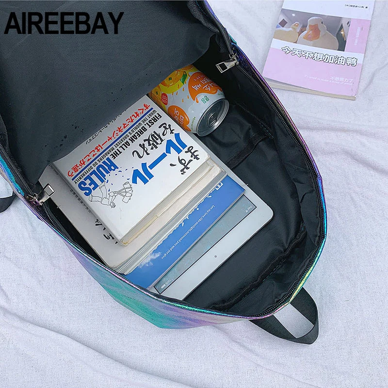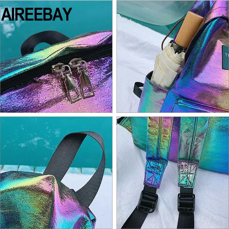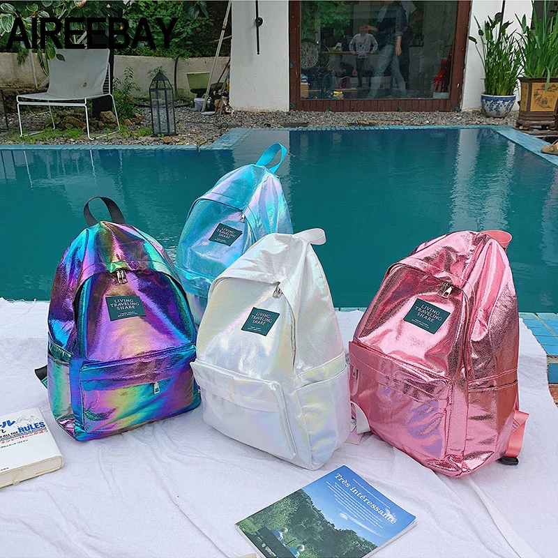 AIREEBAY Hologpraphic Women Backpacks Gradient Color School Bags For Teenage Girls Pink Waterproof