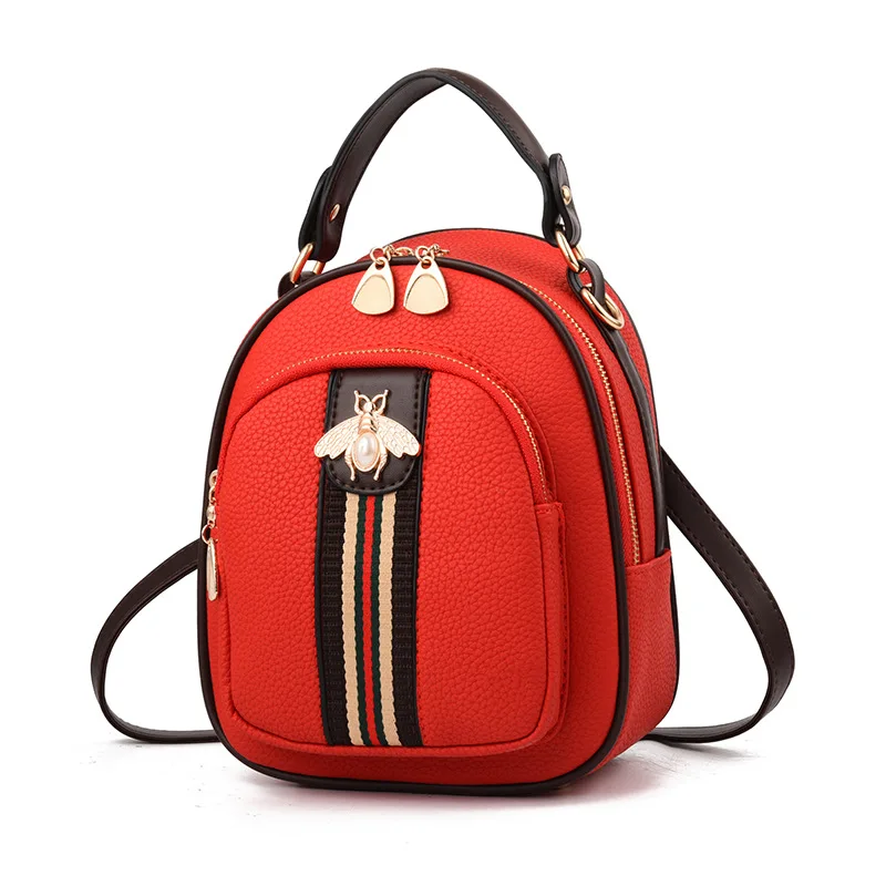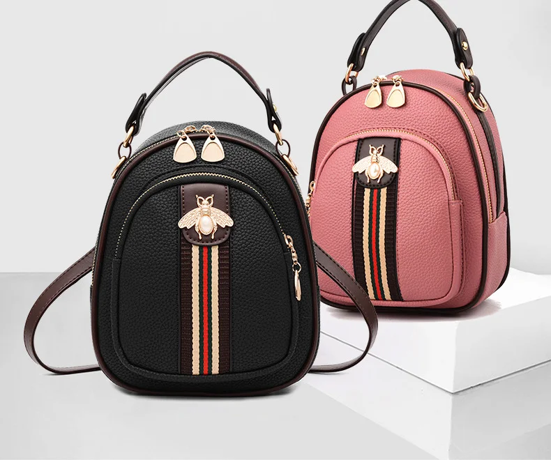 New Girl's Bag Small Bee Ribbon Hit Color Small Round Bag Student Backpack Pure Women Summer Bag Lo