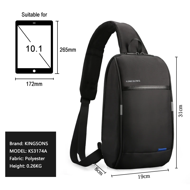 Take Now US $14.28 Kingsons Crossbody Bag For Men Leisure Small Single Shoulder Backpack Travel10.1 inch Chest Backpac