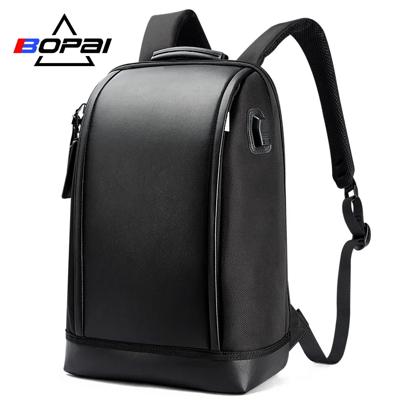 BOPAI Shell Shape Business Men's Office Work Backpack USB Charge Cool Male Leather Daypack Backpack