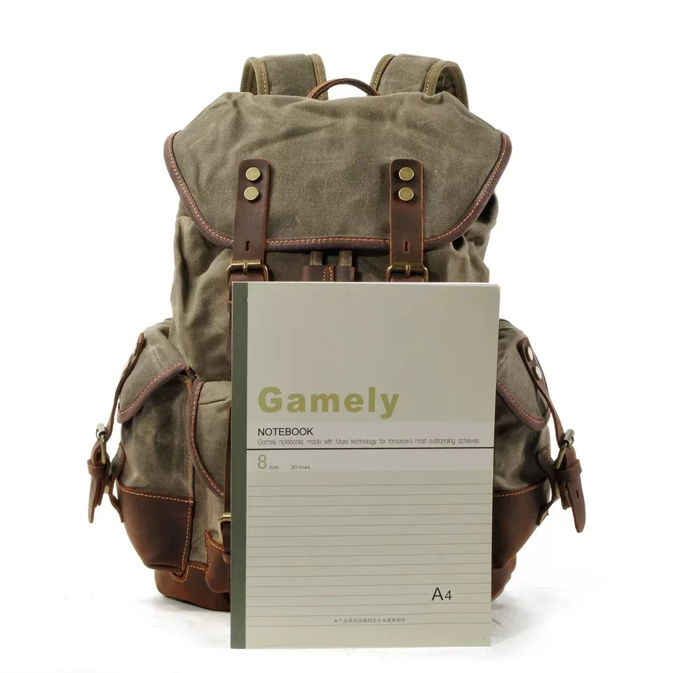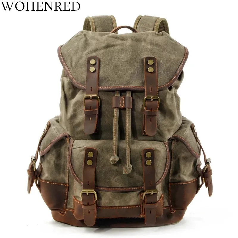WOHENRED Large Capacity Leather Canvas Backpacks For Men School Bags Vintage Waterproof Daypack Hig