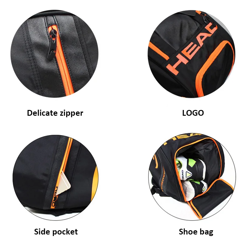 Head Tennis Bag Large Capacity Racket Backpack With Shoes Bag Can Hold 6-9 Rackets Big Bags Men Raq