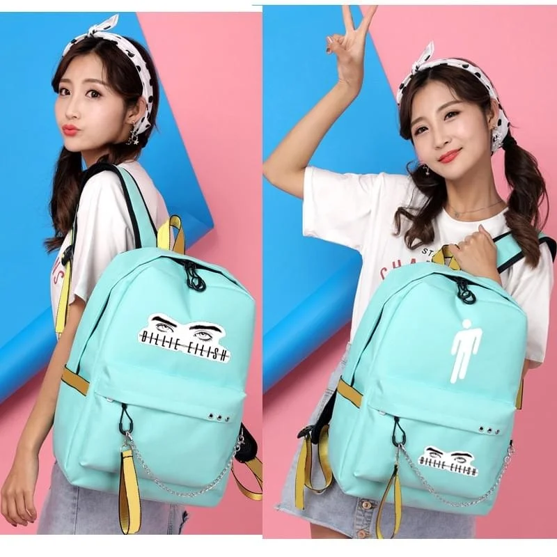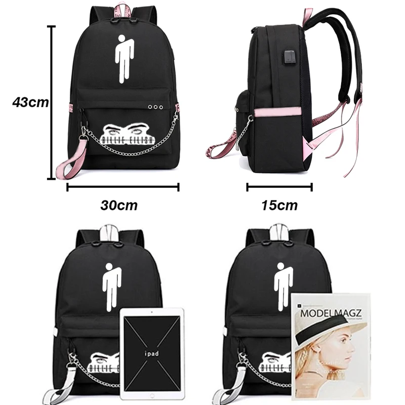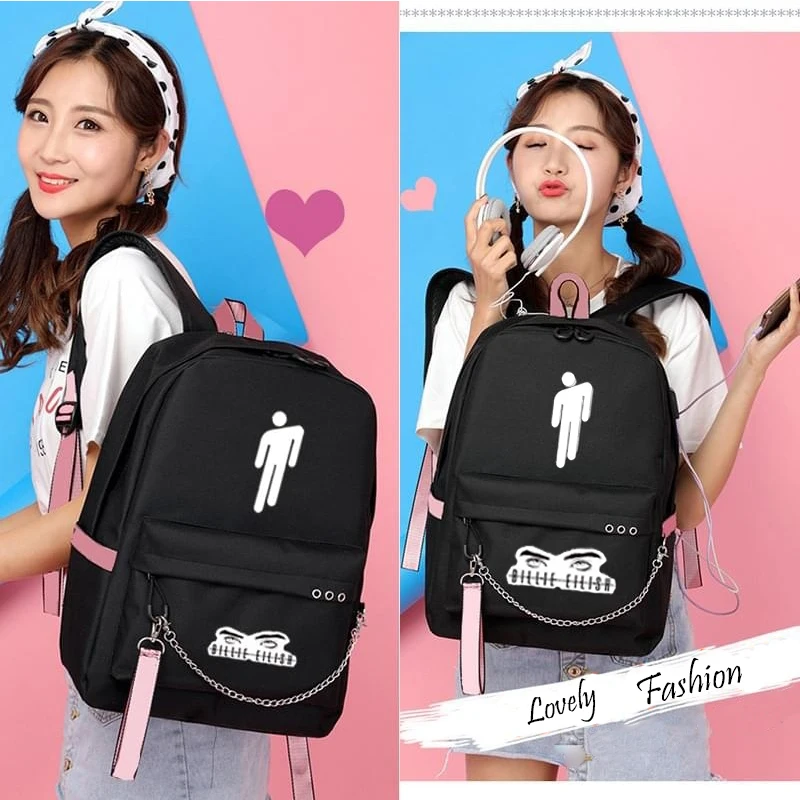 Billie Eilish Canvas Backpack USB Charge Women/Men Student Backpack Letters Print School Bag Teenag