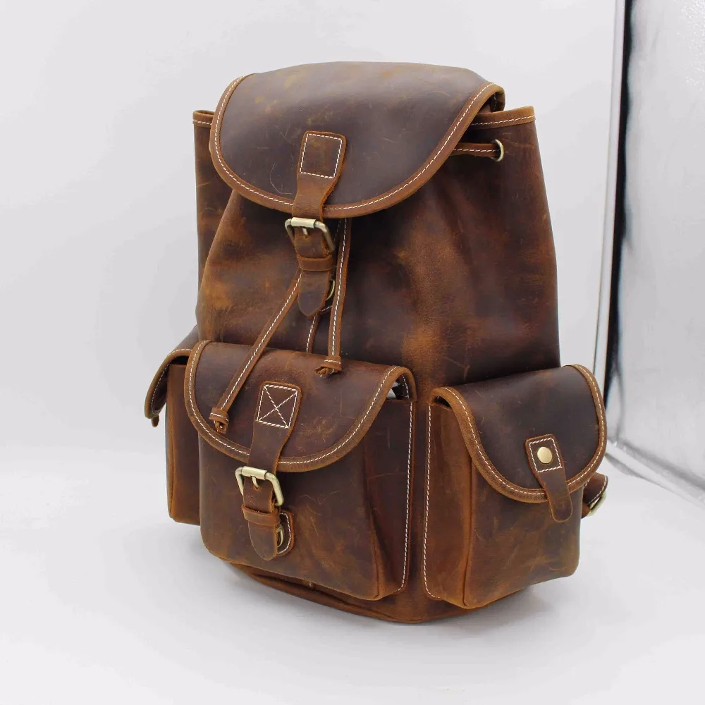 Crazy Horse Cowhide Men Backpack School Bags Knapsack Male Daypack Travel Camputer Bag Vintage 100%