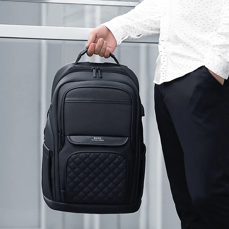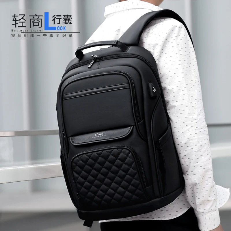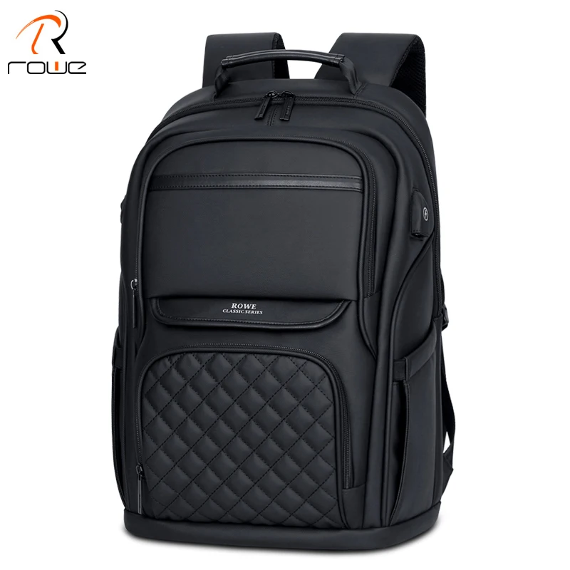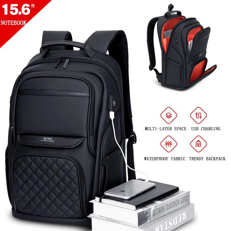 ROWE Business Men's Backpack Black USB Charging AntiTheft Laptop Backpack 15.6 Inch Male Large Capa