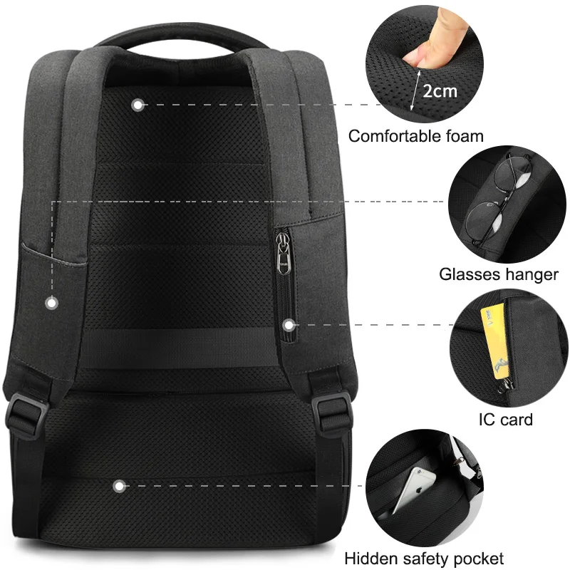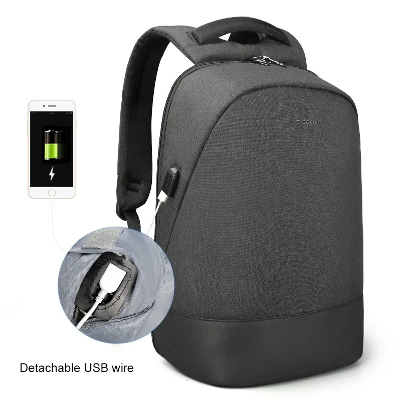 Tigernu 15.6"Laptop USB Charging Waterproof Anti Theft Men Backpack School Travel Backpack Male Fea