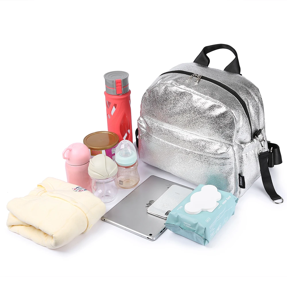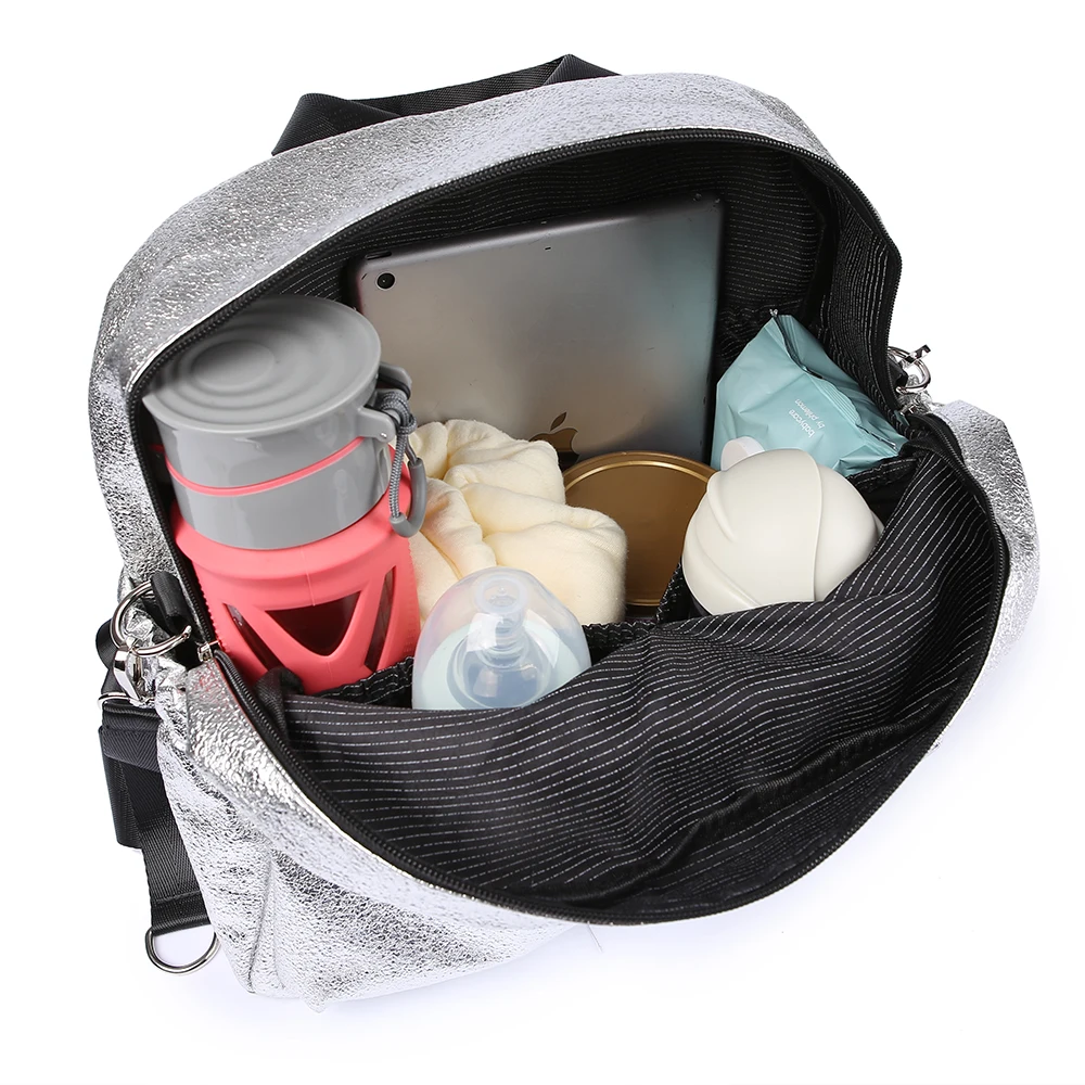 Soboba Textured Silver Travelling Diaper Bag Fashionable Large Capacity Nappy Bags Stylish Maternit