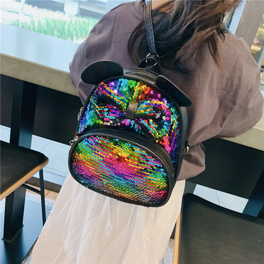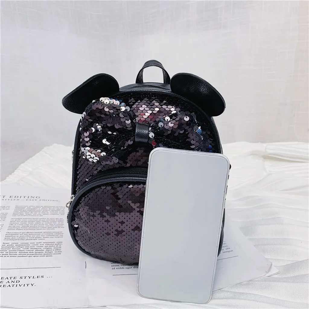 Kids Cartoon School Backpack Girls Sequin Travel Shoulder Bag Hiking Backpacks For Girls Cute Mouse