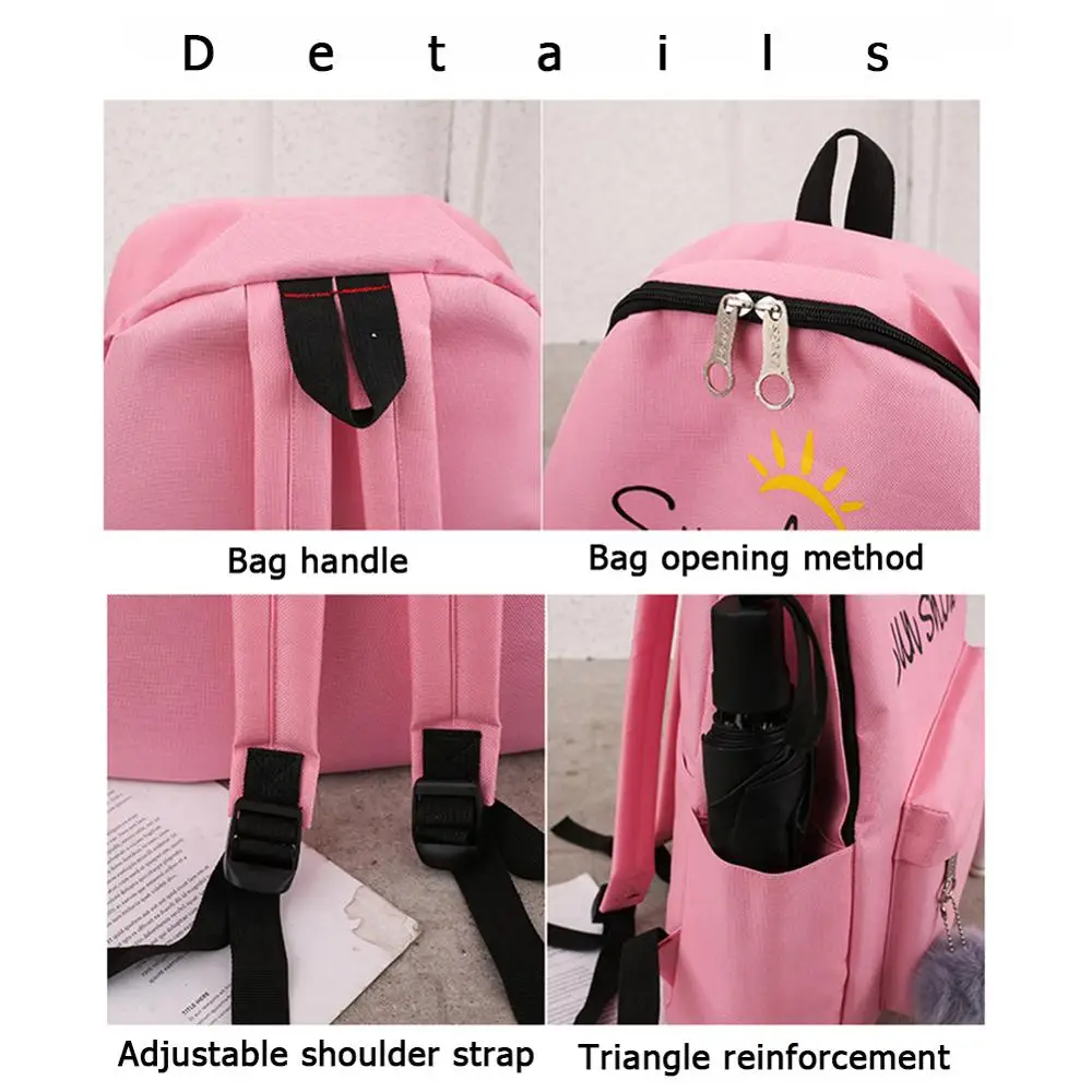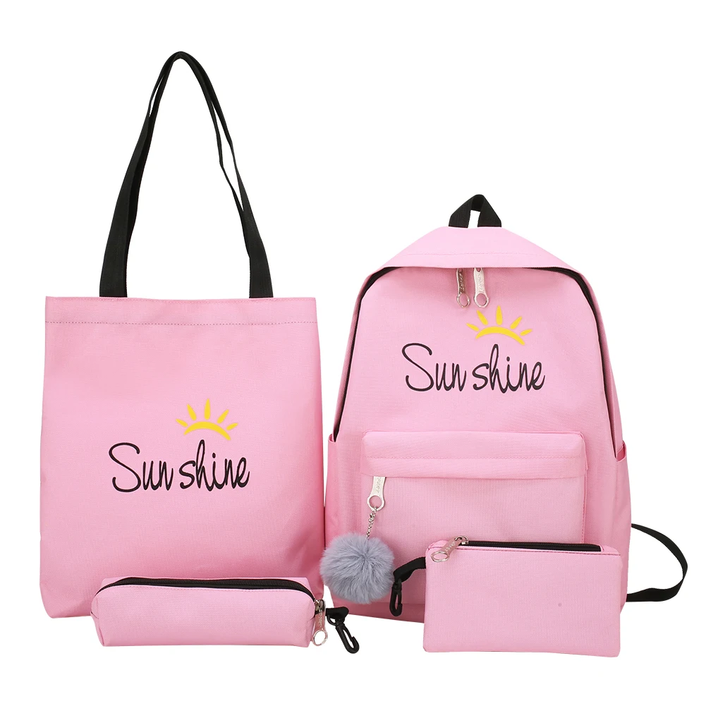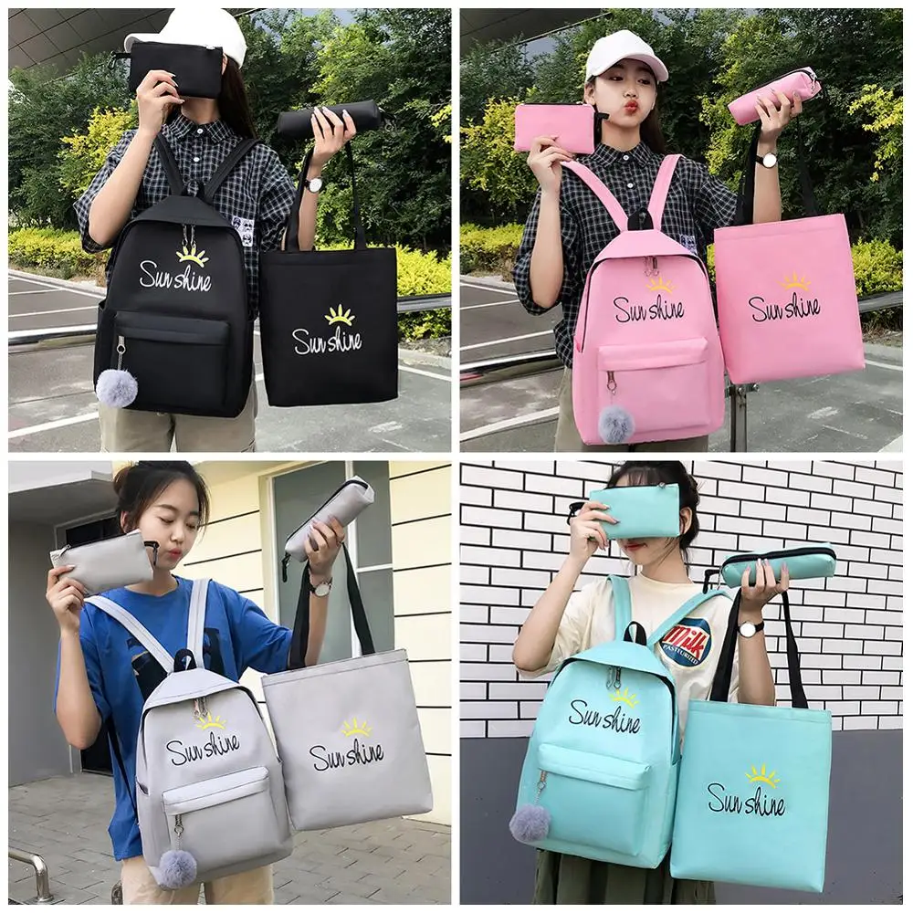 4pcs/set Composite Bags Women Letter Mochila Canvas Backpack Travel Rucksacks Leisure Backpacks For