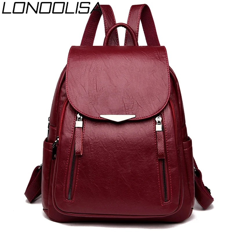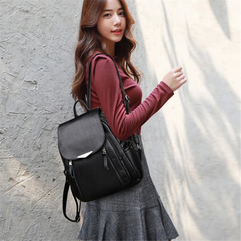 Vintage Women Soft Leather Backpacks Ladies Bagpack Large Capacity School Bags For Teenage Girls Tr