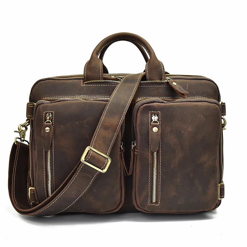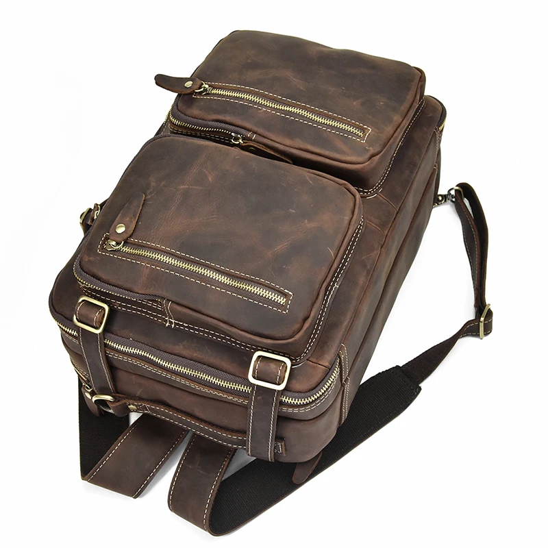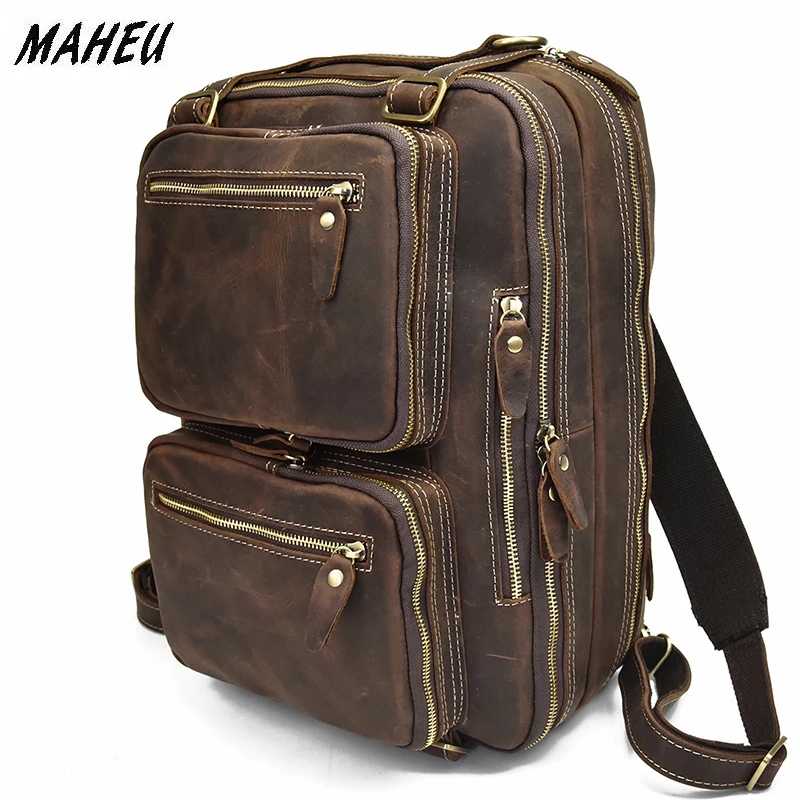 MAHEU High Quality Leather Backpack Double Zipper Cowhide Backpacks Brief Case Travel Office Dual U