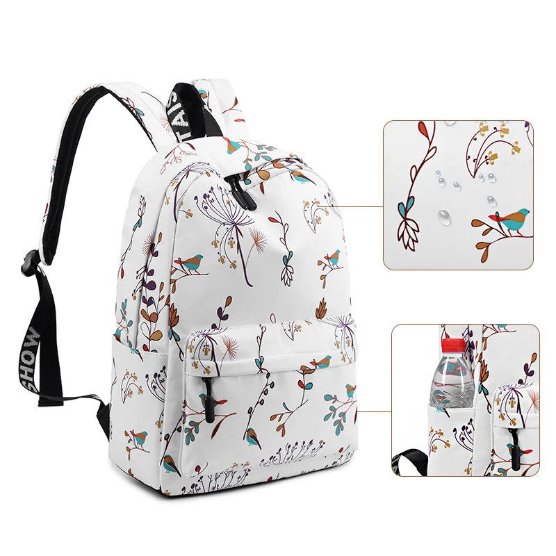 Casual Waterproof Women Backpack Flower Printing Girls College Laptop Bookbags Lady Travel Bagpack