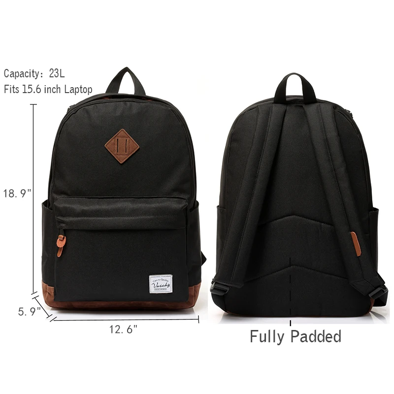 Backpack for Men and Women VASCHY Uni Classic Water Resistant Rucksack School Backpack 15.6Inch Lap