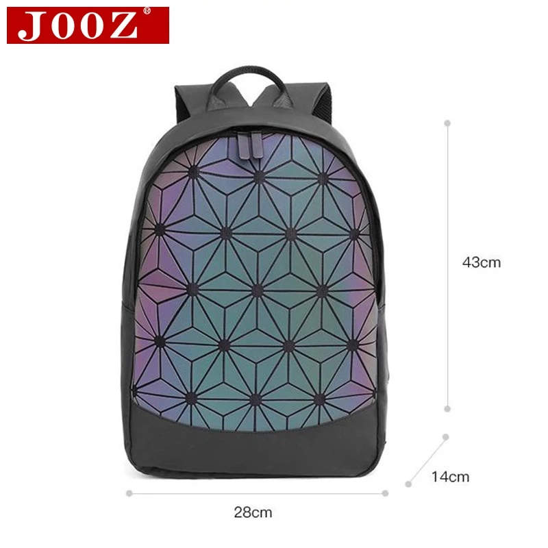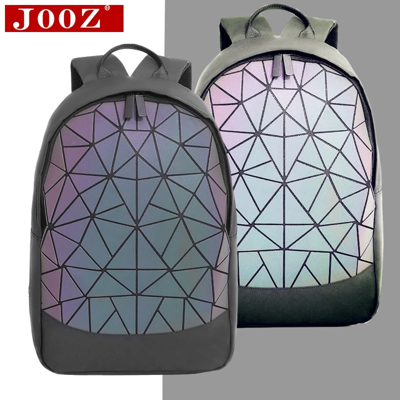 JOOZ Men Laser Luminous Backpack Geometric Laptop Backpack boy Backpack bag Teenage mochila large m
