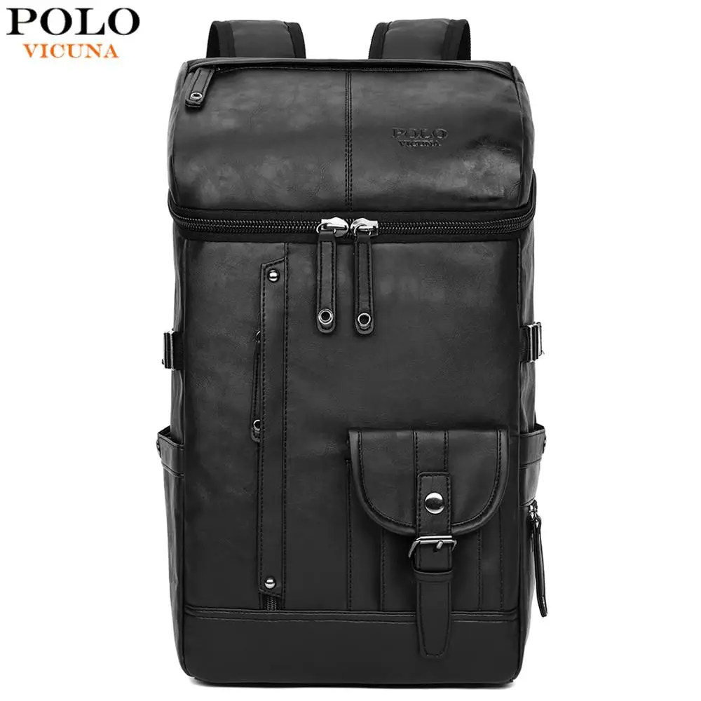 Only US $31.79 VICUNA POLO High Capacity Large Mens Travel Backpack Bag Black Leather Man Backpack For Trip Laptop