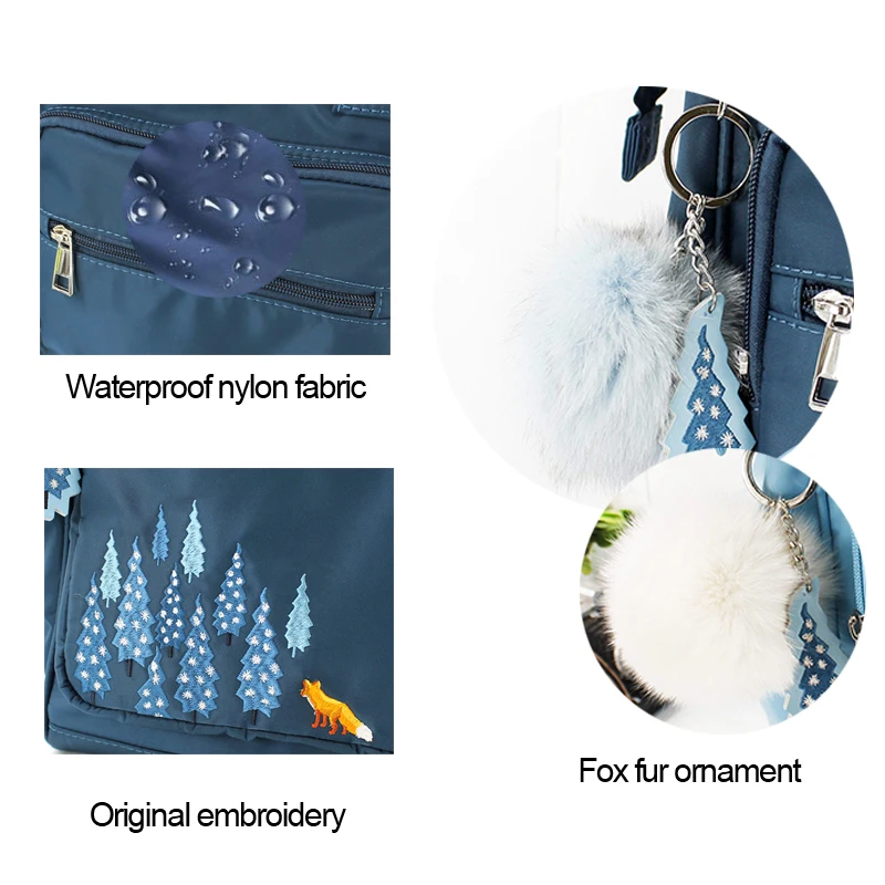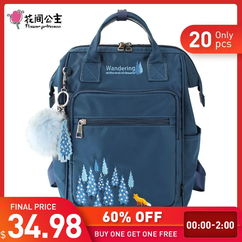 Flower Princess Women Backpack Waterproof Laptop Bag Embroidery Nylon School Backpack For Girls Lad