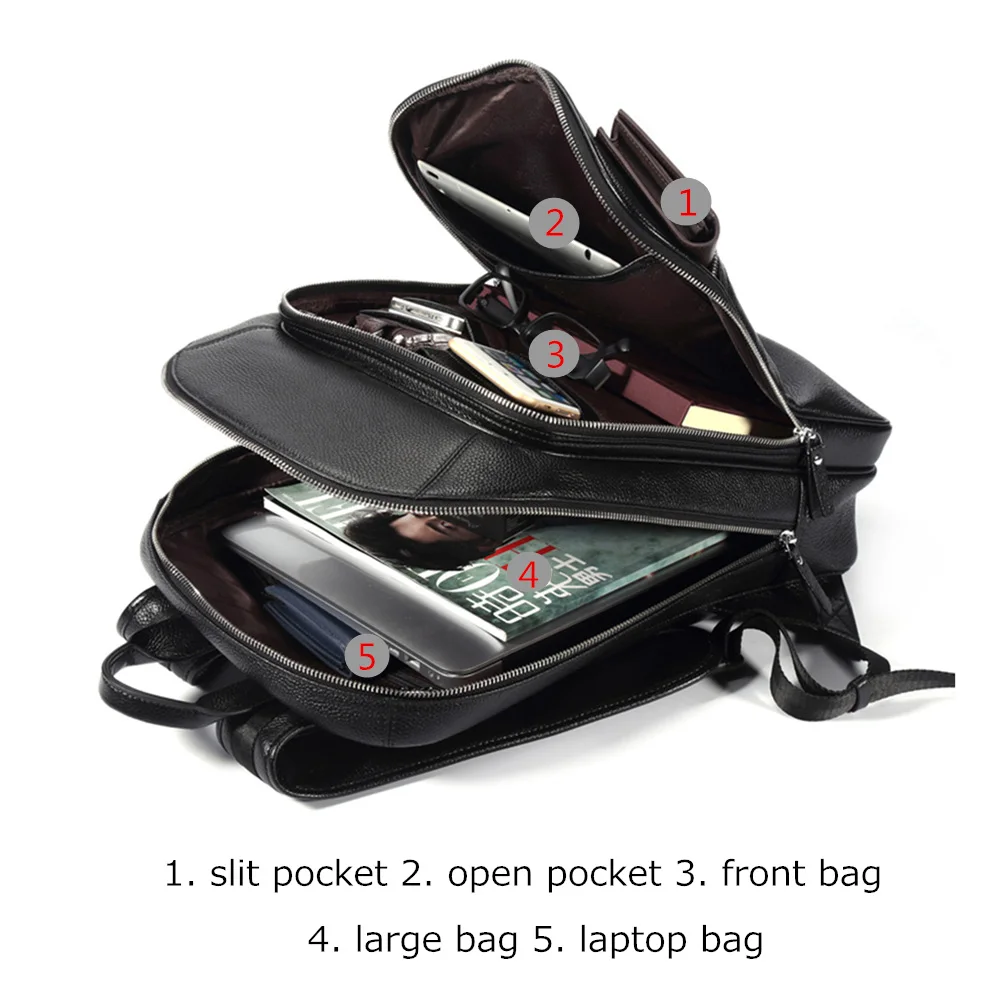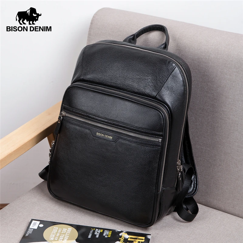BISON DENIM Genuine Leather Backpack Male 14 inch Laptop Backpack Travel Backpack Male Fashion Back