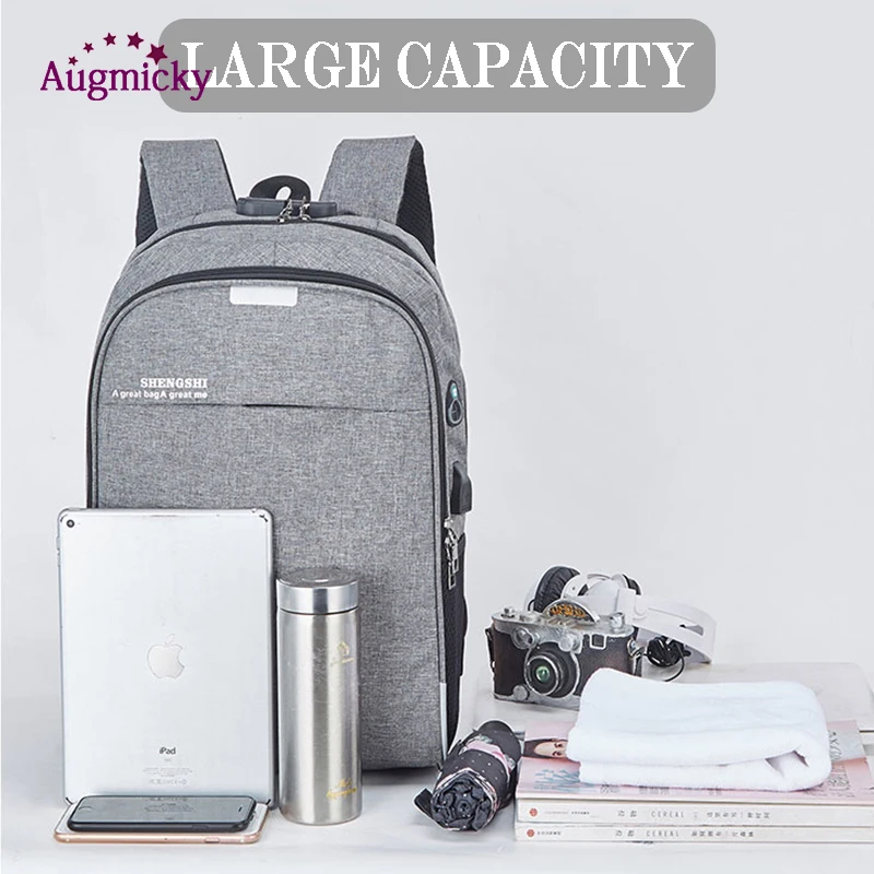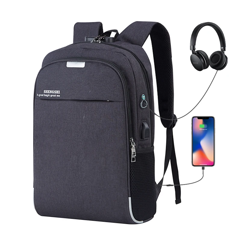 New 15.6inch USB Charging Headphone cable hole Laptop Backpack Rucksack Male Business Travel Back P