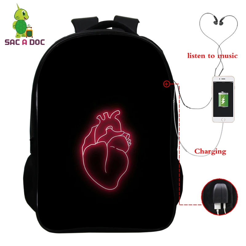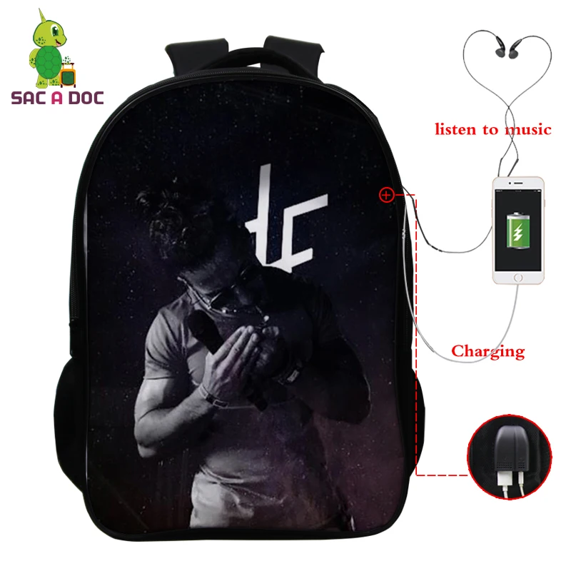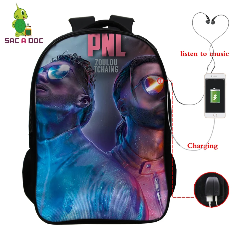 16 Inch Backpacks PNL Prints USB Charge Schoolbag for Teenage Boys Girls Bookbag Laptop Backpack Tr