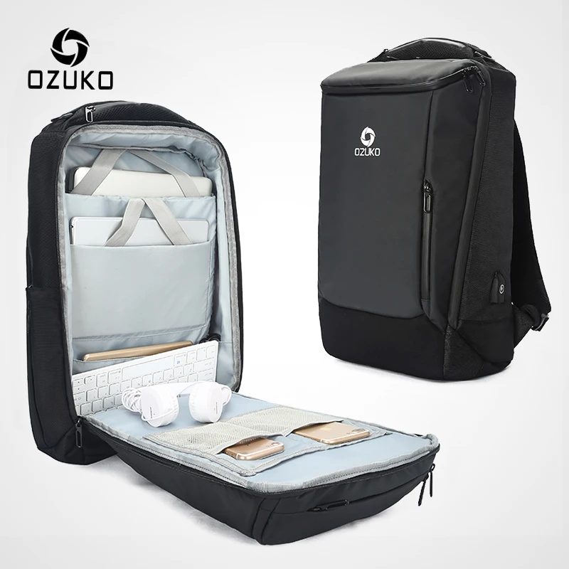 OZUKO Men's 17 Inch Laptop Backpack Large Capacity Waterproof Backpacks for Men Male USB Business B
